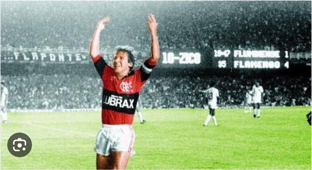 Dentre os maiores jogadores de futebol do flamengo destaca-se seu maior ídolo, o Zico, aparecendo nesse FLA – FLU no Maracanã.